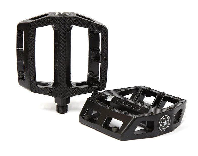 For a long time, Steven Hamilton’s signature pedals from Animal Bikes were the only thing you would step onto. The Animal Hamilton pedals are available here in the alloy version, with removable pins. These are great BMX pedals. Get some to grip and rip.