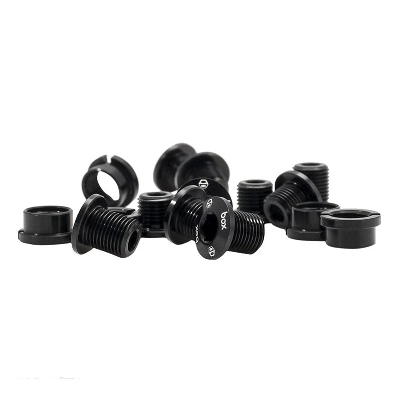 The BOX alloy chainring bolts take care of just about any chainring/crank configuration, supplying 6mm and 8.5mm front bolts, along with 5mm rear nuts.Â