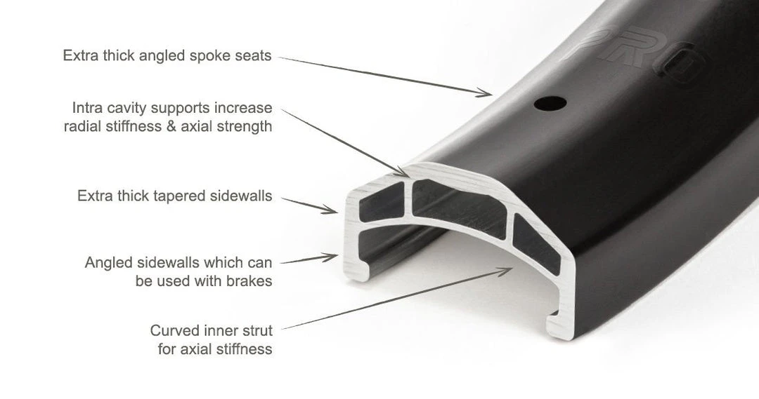 BSD’s Aero Pro rim is made with strength in mind, while still retaining good looks. With extra thick tapered sidewalls, angled spoke seats designed to accommodate proven cross-over lacing and a curved inner strut, the BSD Aero Pro rim has been well thought out to make sure that your BMX wheels roll straighter, for longer.