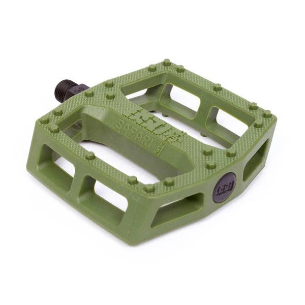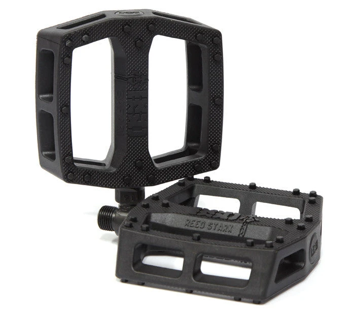 Reed Stark put some serious thought into his signature BSD Safari pedals. He noticed that when a BMX bike falls to the ground, the corner pins on plastic pedals grind and break off.