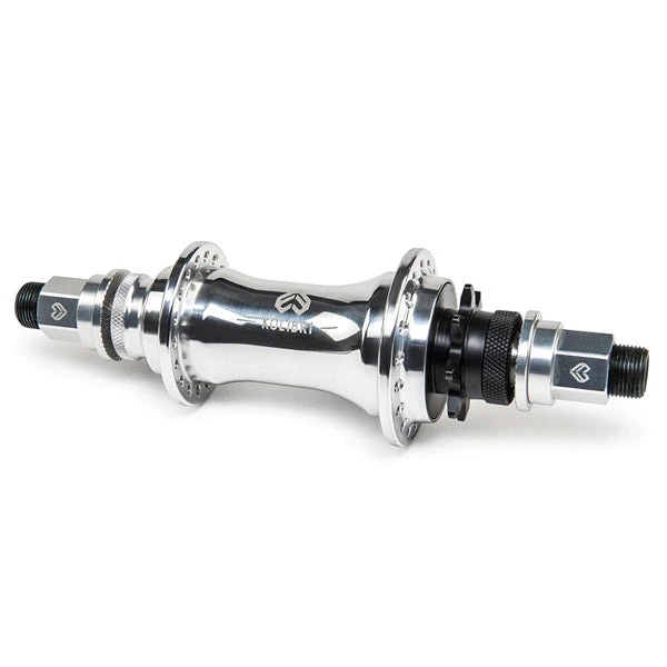 Talk about clean. The Eclat Kolibri cassette hub is dialled, with a nice, low flange to make it all the more stylish. One of the main points that makes the Kolibri a winner is the 14mm hollow axle, making peg riders stoked. Bearings in the driver have been replaced with a Polymer bushing, making this hub run smooth with no hassles.