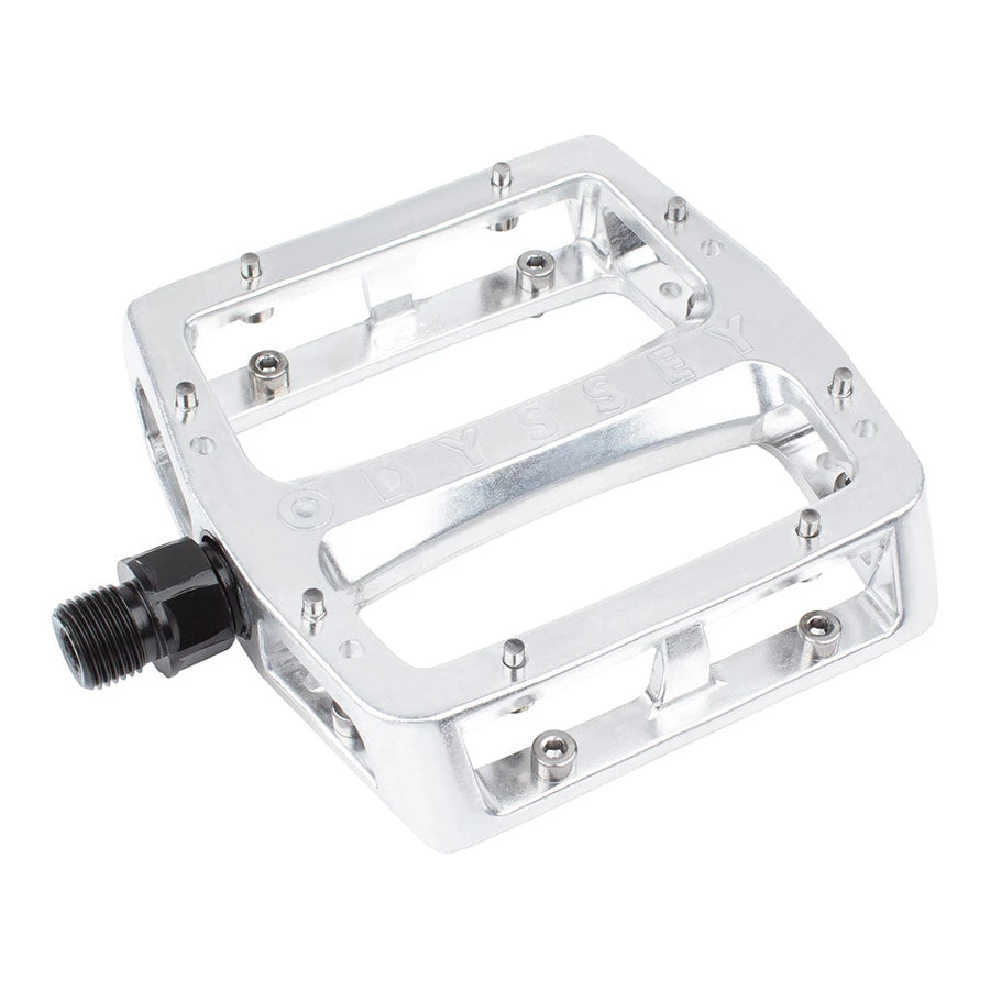 Odyssey BMX come through with another killer product, the Odyssey Grandstand pedals. Tom Dugan wanted a big platform BMX pedal with a slim profile and these pedals from Odyssey BMX delivers. The alloy version is tough, with removable pins for custom traction and a longer life.