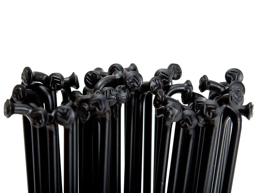Super strong, high quality Eclat BMX spokes, complete with custom embossed éclat logo on the spoke heads.