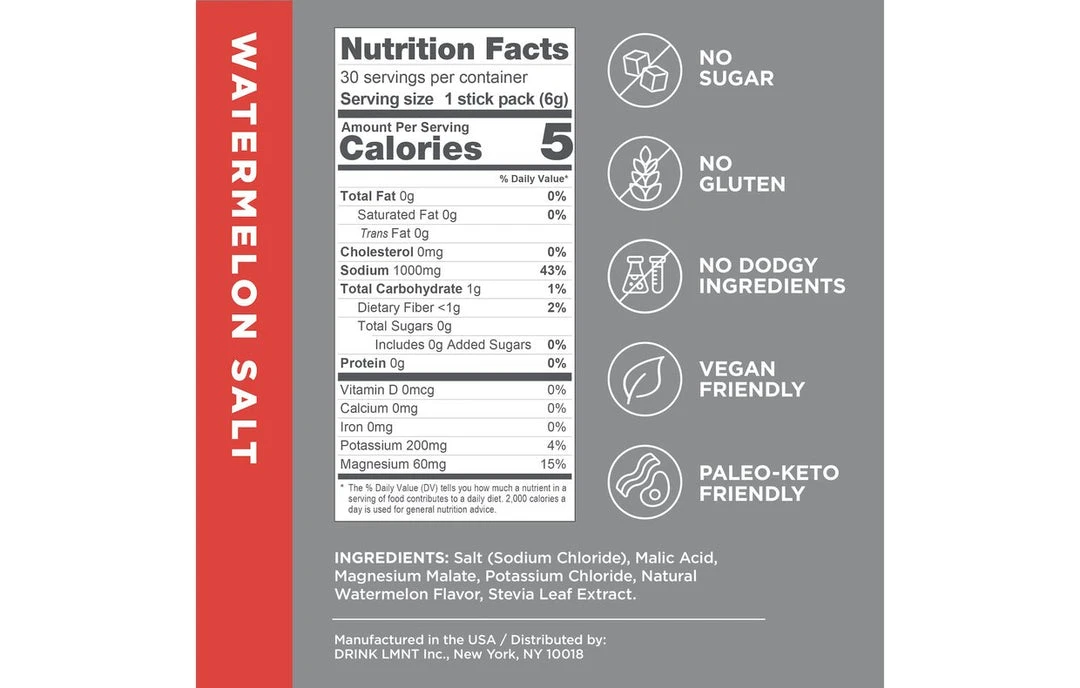 LMNT is formulated with the ideal ratio of sodium, magnesium and potassium to ensure that your electrolytes stay balanced.