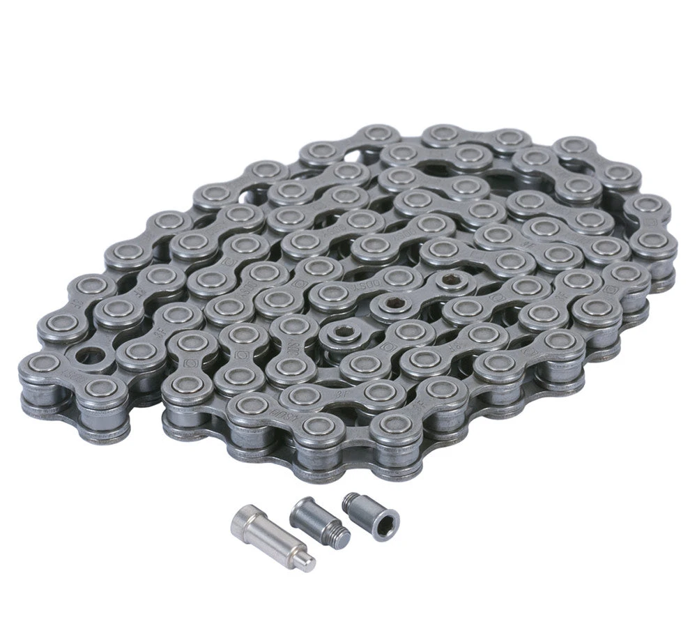 3. Unique Master and Half Links with Threaded Pins: Users can break and re-join the chain with just a 3mm hex key. The chain’s half link plates are taller at the bends to both increase stiffness and minimize stretch. Since the use of a chain breaker to re-join the chain has been eliminated, the pins can retain their original level of tightness from the factory. Also, carrying a spare master link and 3mm allen key in most cases is enough to repair the Key Chain when riding, so lugging around a chain tool is usually unnecessary.