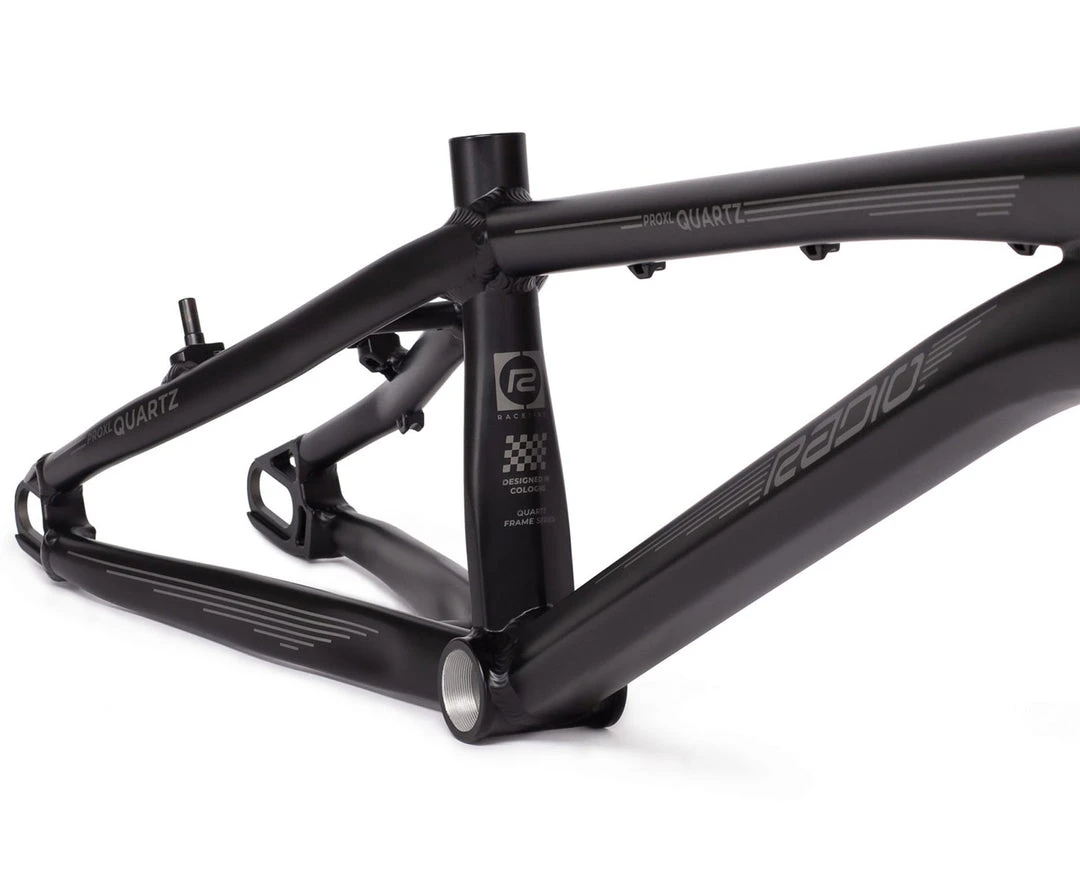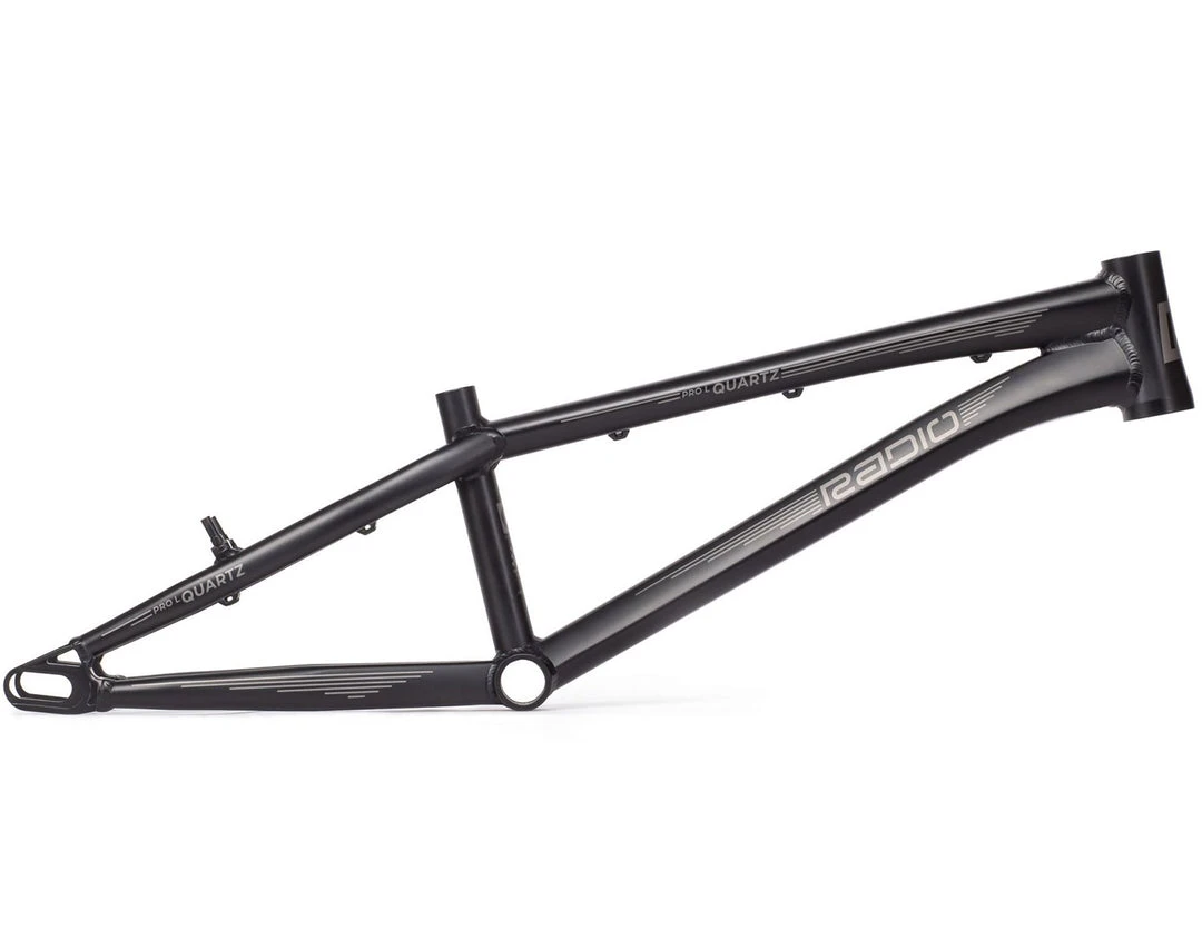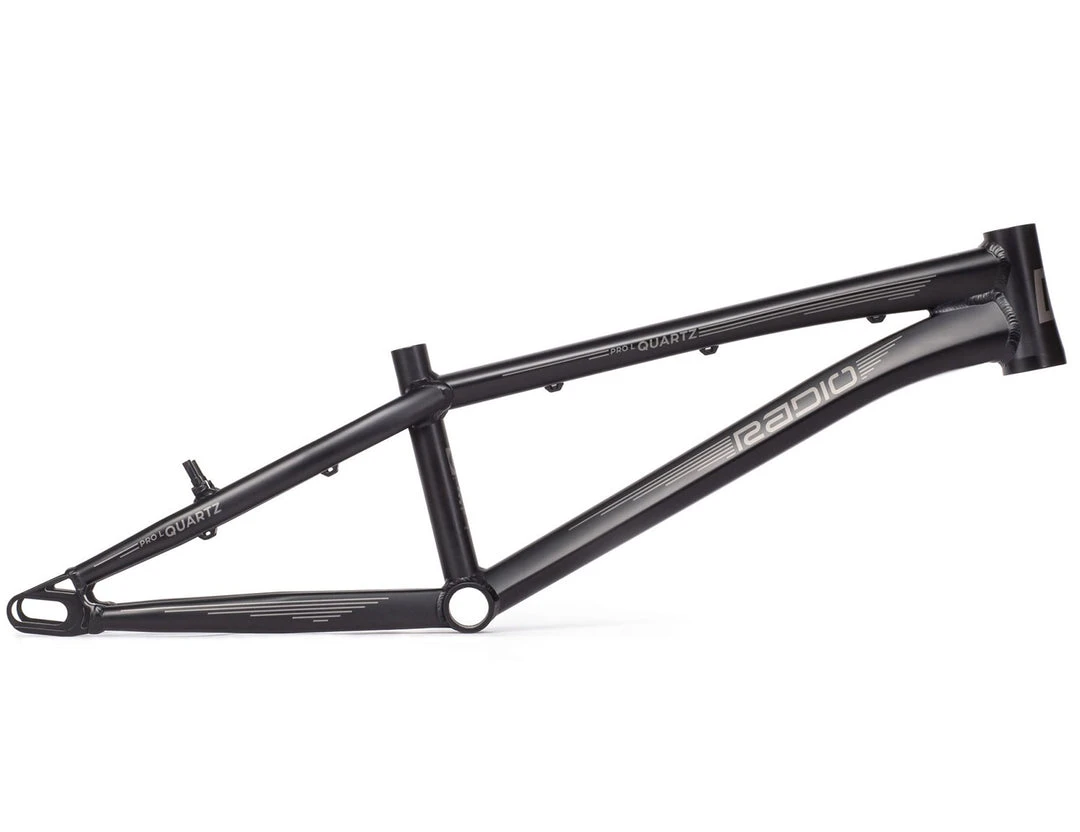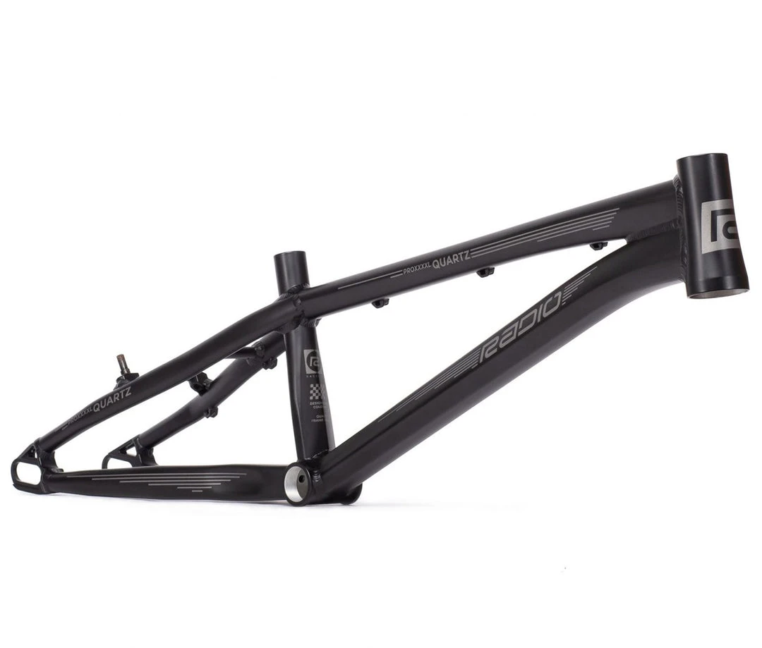The Radio Quartz race frame is one truly sleek and fast BMX race frame with all the tech features you can desire, in 6 sizes from Pro, all the way to Pro XXXXL.