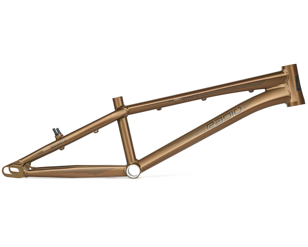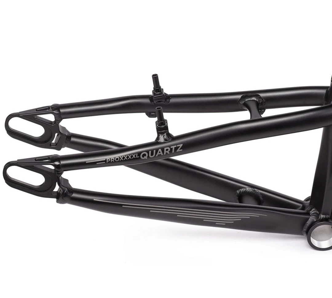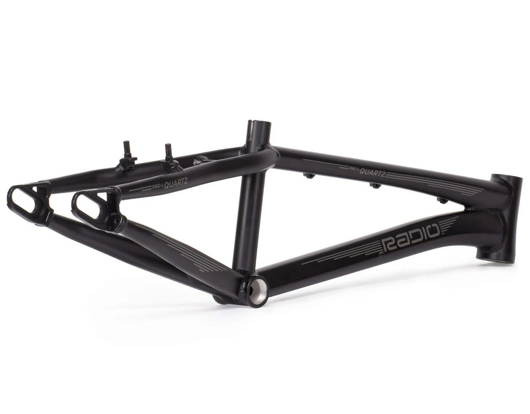 The Radio Quartz race frame is one truly sleek and fast BMX race frame with all the tech features you can desire, in 6 sizes from Pro, all the way to Pro XXXXL.
