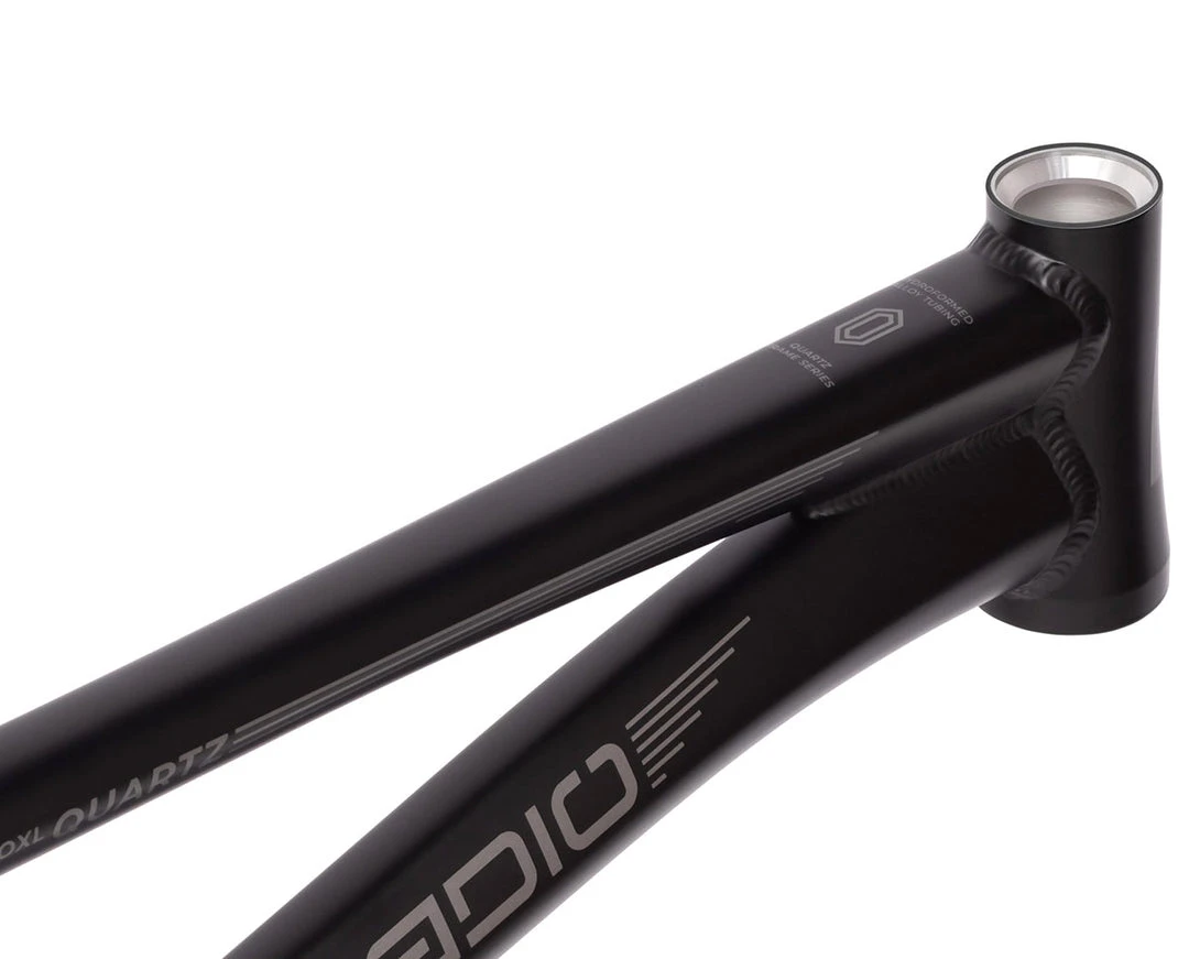 The Radio Quartz frame is a podium level BMX race frame. Using Radio’s Paradigm Hydroformed Alloy tubing, the Radio Quartz frame sheds a bunch of weight without sacrificing strength.
