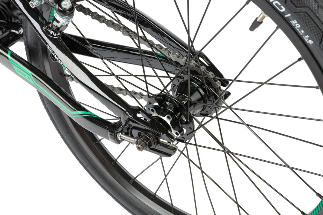 The Radio Xenon Expert XL race bike is spec’d to suit a rider from 10 – 13 years old (160cm – 171cm tall), with a more lightweight, zippy feel for this age bracket than it’s pro counterpart. 32 hole wheels make sure that your bike stays strong when you’re sending the big straights at your local track, with a fast engaging cassette hub to get you out of the gate in front.