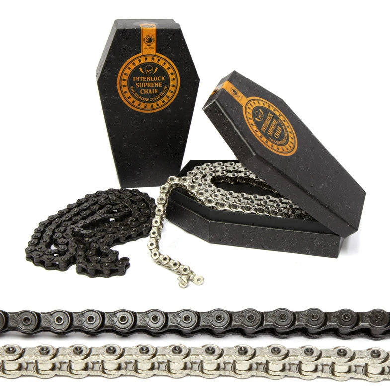 The Shadow Conspiracy has pushed the limits of chain manufacturing to create arguably the strongest BMX chain ever. Using forging, a manufacturing process that has never been applied to a BMX chain before, Shadow was able to implement a completely unique plate and pin design to help eliminate all weak points, tocreate the stiffest and hardest chain plate possible. Along with extra wide mushroomed pins and hardened rollers, this chain tested at an incredible tensile strength of 1500 kgs and higher!