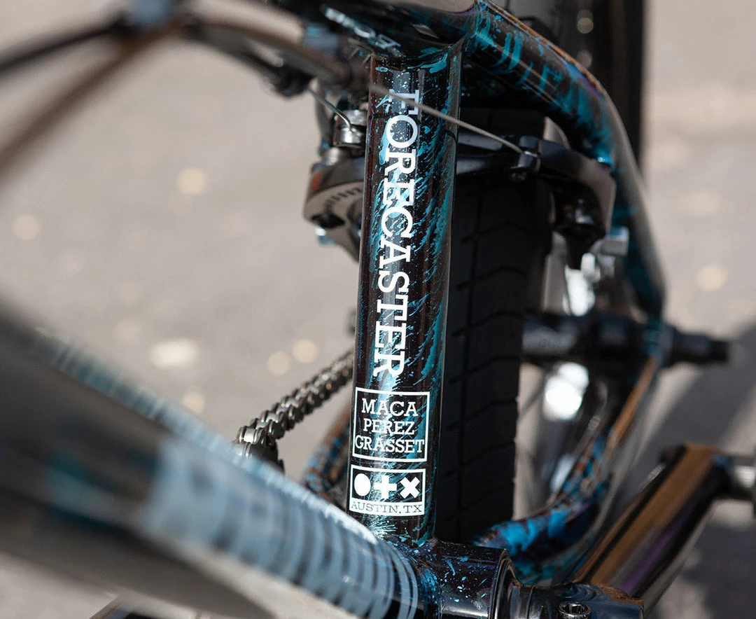 This is Maca Perez Grasset’s signature gloss cyan rain colourway, featuring a mid length 20.5″ top tube and shorter cranks, to help with all the progressive transition riding you can handle.